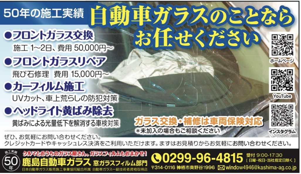 ガラスに関するお悩みや不安は、専門店の【鹿島自動車ガラス】にお任せください!