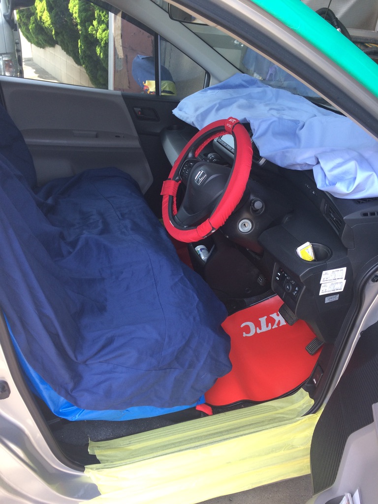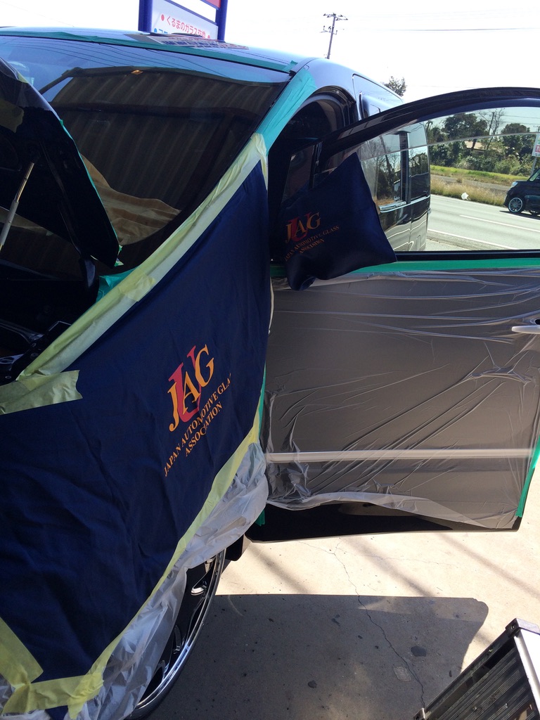 作業前の養生が仕上がりを決める これが【鹿島スタイル】です 自動車ガラス交換は鹿島自動車ガラスにお任せください